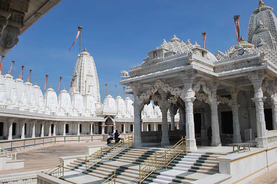 Bhandeshwar Jain Temple This temple was built by Bhanda Shah, a Jain merchant in the 15th century. It was constructed in the honor of Parsvanathji, the 23rd Jain tirthankar. The temple is divided into three floors and the shrine is made up of red sandstone. It is very famous for rich mirror work, gold leaf paintings, carvings and wall paintings.